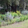 O troço sul ladeia, à sua esquerda, o Jardim Nascente e o alpendre da casa e, à sua direita, a Galeria, um túnel arbustivo sombreado, formado por duas fileiras de ligustros, abrunheiros bravos, piracantas e cotoneasteres que se sobrepõem nas cimeiras. A Rotunda dos Cedros situa-se a meio do Eixo Norte-Sul dá acesso, a poente, ao Pomar e, a nascente, ao Sobral. É constituída essencialmente por cedros que envolvem, exterior e interiormente, a rotunda. Tem no seu centro um carvalho português. O troço norte começa na Rotunda e finda no Campo Grande. Ladeia, a nascente com o Sobrado, separado por uma sebe de ligustros interrompida apenas na Praça da Figueira, e a poente com o Pomar, separado deste por uma fileira de marmeleiros. |